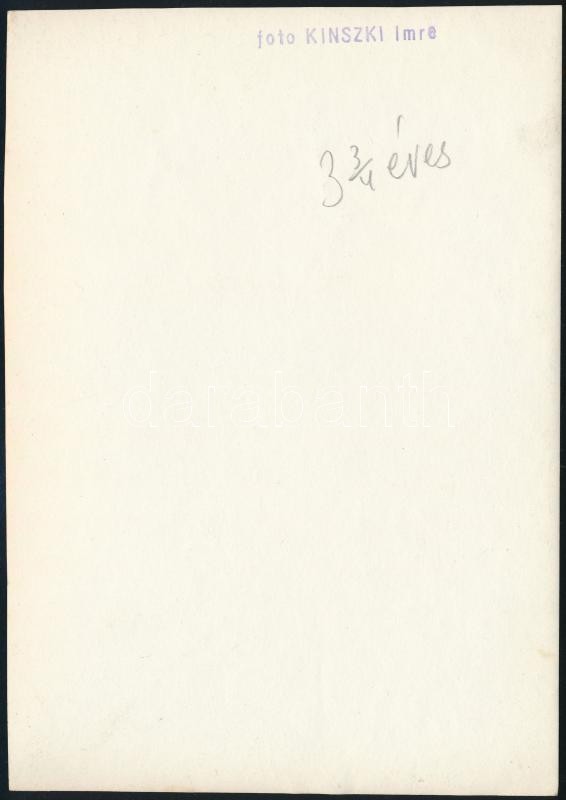 cca 1931 Kinszki Imre (1901-1945) budapesti fotóművész hagyatékából, pecséttel jelzett, vintage fotó (Kinszki Gáborka három és háromnegyed éves a felirat szerint), 16,8x11,8 cm