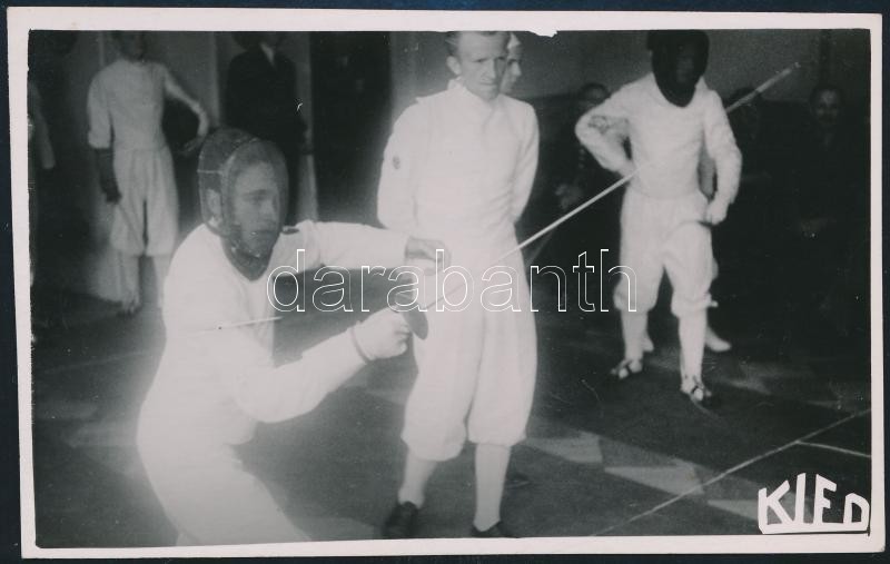 cca 1938 Versenyzők egy magyar vívóversenyen, fotólap, 8,5×13,5 cm https://www.darabanth.com/hu/380-Gyorsarveres/380.0/Fotomuveszet/Foto~20/cca-1938-Versenyzok-egy-magyar-vivoversenyen-fotolap-8-5C39713-5-cm~II2254205