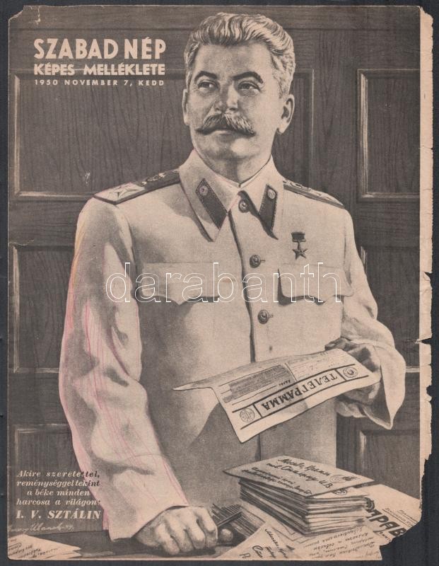cca 1950 A Szabad Nép képes melléklete (Rákosi, Sztálin), 2 db https://www.darabanth.com/hu/380-Gyorsarveres/380.0/Mutargy-papirregiseg-egyeb/Nyomtatvanyok~32/cca-1950-A-Szabad-Nep-kepes-melleklete-Rakosi-Sztalin-2-db~II2255836
