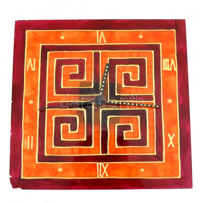 Leírás: Festett üveg óra, kopott, jelzés és elem nélkül, 23×23 cm