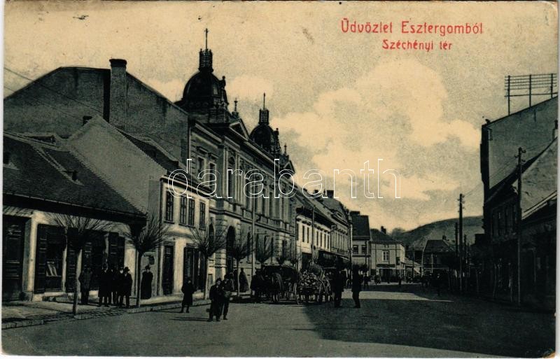1912 Esztergom, Széchenyi tér, üzletek. W. L. 134. (EK) https://www.darabanth.com/hu/382-Gyorsarveres/382.0/Kepeslapok/Magyarorszag~2000005/1912-Esztergom-Szechenyi-ter-uzletek-W-L-134-EK~II2272561