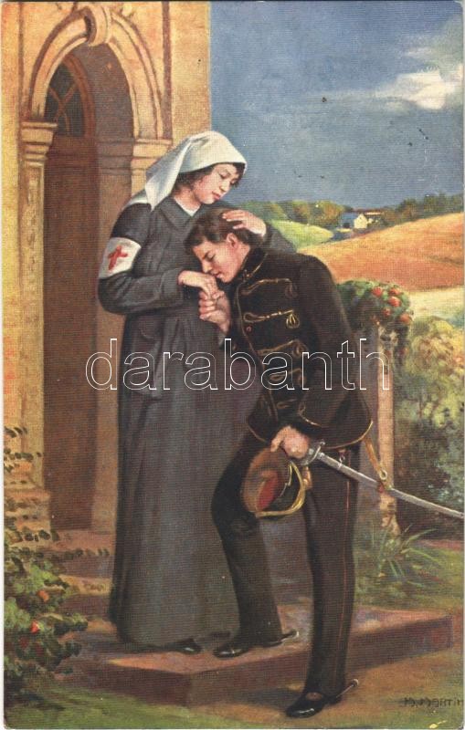 Genesen? / WWI Austro-Hungarian K.u.K. military art postcard, Red Cros... https://www.darabanth.com/hu/385-Gyorsarveres/385.0/Kepeslapok/Katonai~500088/Genesen-WWI-Austro-Hungarian-KuK-military-art-postcard-Red-Cross-nurse-with-recovered-soldier~II2305749