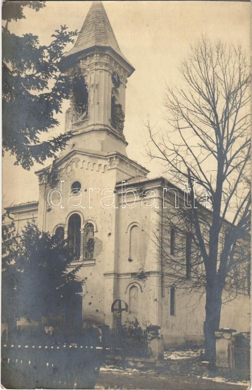 Leírás: 1917 Solca, Szolka (Bucovina, Bukovina); Római katolikus templom az orosz ágyúktól megsérülve / WWI, church destroyed by the Russian cannons. photo