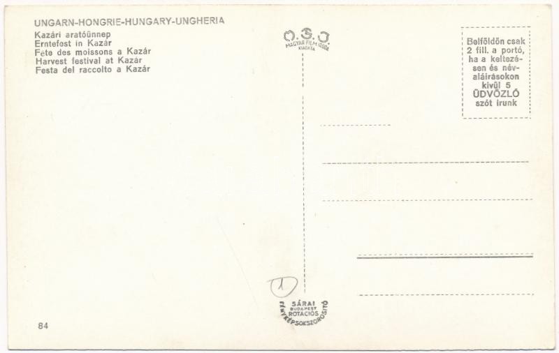 Kazár, aratóünnep / Hungarian folklore, harvest festival https://www.darabanth.com/hu/387-Gyorsarveres/387.0/Kepeslapok/Folklor~2000065/Kazar-aratounnep-Hungarian-folklore-harvest-festival~II2321325