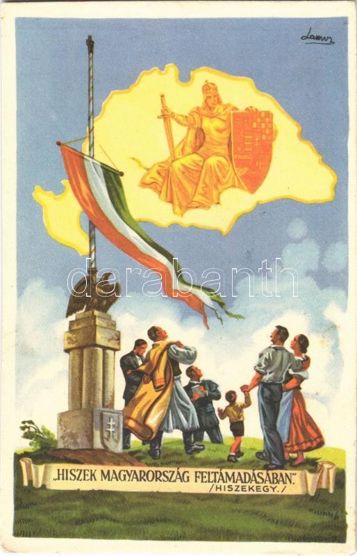 "Hiszek Magyarország feltámadásában" (Hiszekegy) Kiadja az Ereklyés Or... https://www.darabanth.com/hu/387-Gyorsarveres/387.0/Kepeslapok/Irredenta~2000082/Hiszek-Magyarorszag-feltamadasaban-Hiszekegy-Kiadja-az-Ereklyes-Orszagzaszlo-Nagybizotts~II2315587