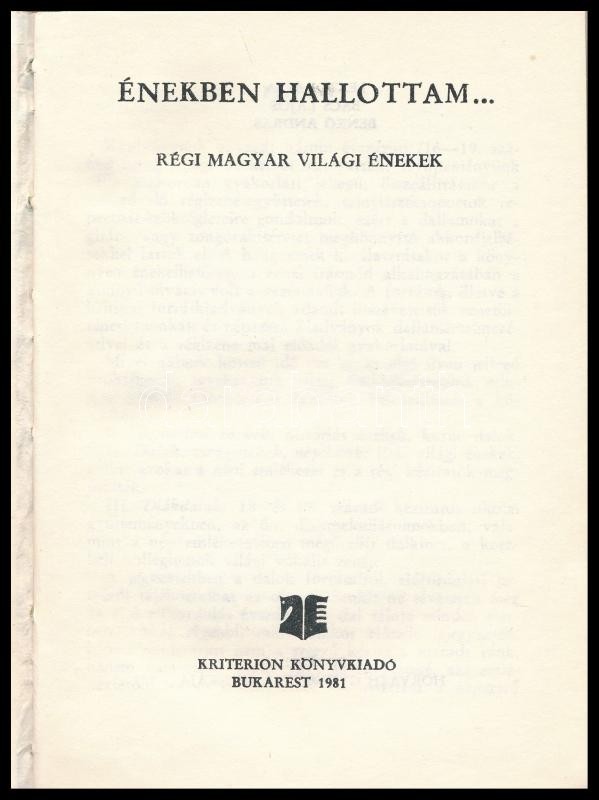 Énekben hallottam...Régi magyar világi énekek. Bukarest, 1981., Kriterion. Válogatta, az előszót írta és jegyzetekkel ellátta Boros Zoltán. Kiadói félvászon kötésben.