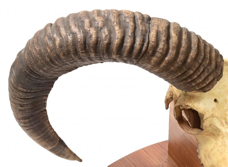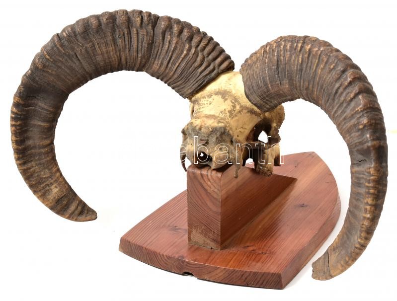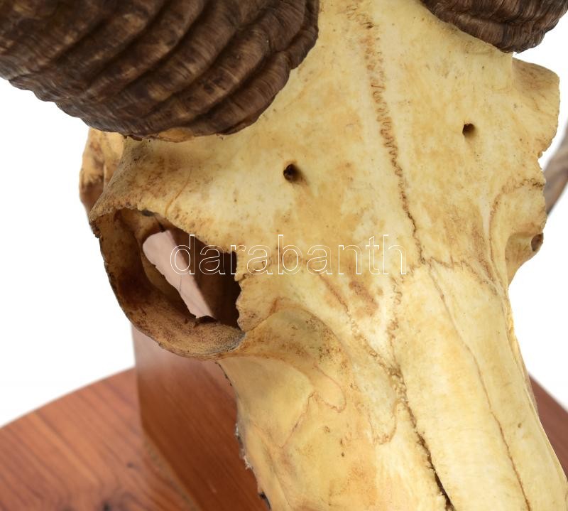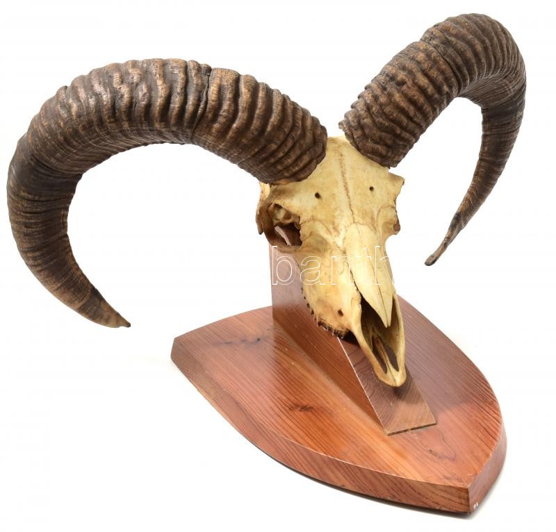 Leírás: Muflon trófea, fa alapon, falra akasztható, alap: 38x21 cm