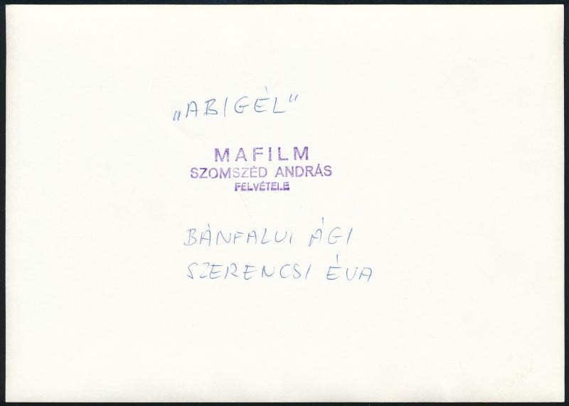 1977 Az Abigél c. tv sorozat szereplői, (balról jobbra) Bánfalvi Ági és Szerencsi Éva (a filmben Vitay Georginát alakította) (1952-2004); Szomszéd András pecsétjével ellátott vintage fotó, 13x18 cm