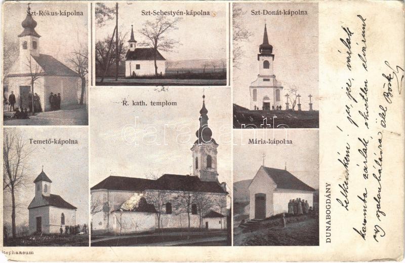 1910 Dunabogdány, Szent Rókus kápolna, Szent Sebestyén kápolna, Szent Donát kápolna, Római katolikus templom, Temető kápolna, Mária kápolna (EM)