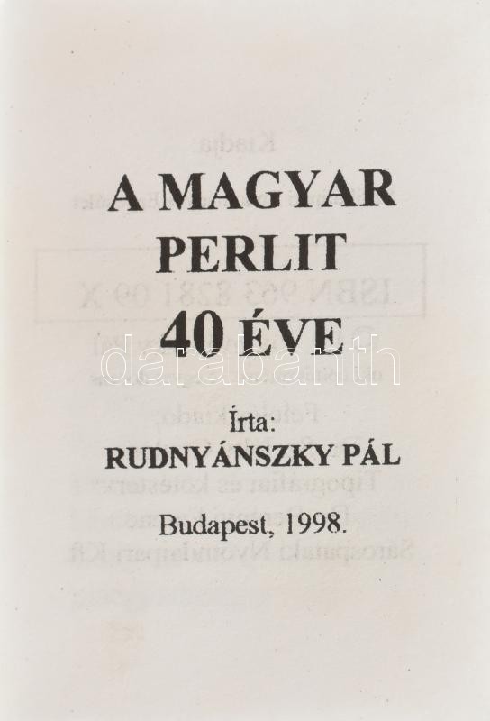 Tóth Pál (szerk.): A magyar perlit 30 éve.1959-1989. Budapest, 1989, Új Barázda Mgtsz. Műbőr kötésben