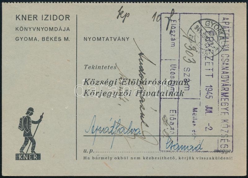 1945 Knez Izidor Könyvnyomdájának fejléces levelezőlapja