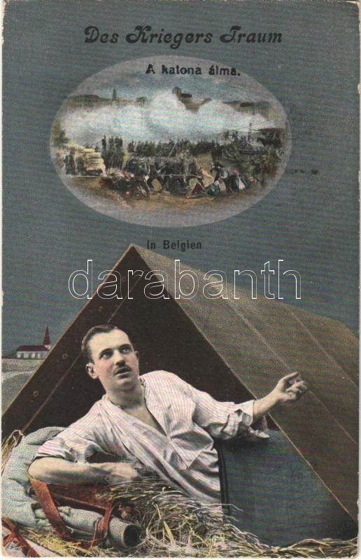 Der Kriegers Traum, In Belgien / A katona álma / WWI Austro-Hungarian K.u.K. military art postcard, soldier's dream. M.B.L. 1449. (Rb)