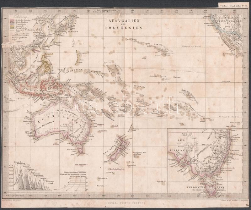 XIX. sz. Vegyes régi térkép tétel, Poprád és környékének térképe (Conjunctio Fluvii Waagi cum Poprado), Brünn térképe, Ceylon térképe, Délkelet-Ázsia (Entwurf des Birmanschen Reichs), Ausztrália és Polinézia, 2 db kisméretű térkép Afrika részlet térkép, változó állapotban, közte körbevágottak, foltosak, hajtottak, egy szélén hiánnyal, 10x12,5 és 32x20 cm közötti méretben