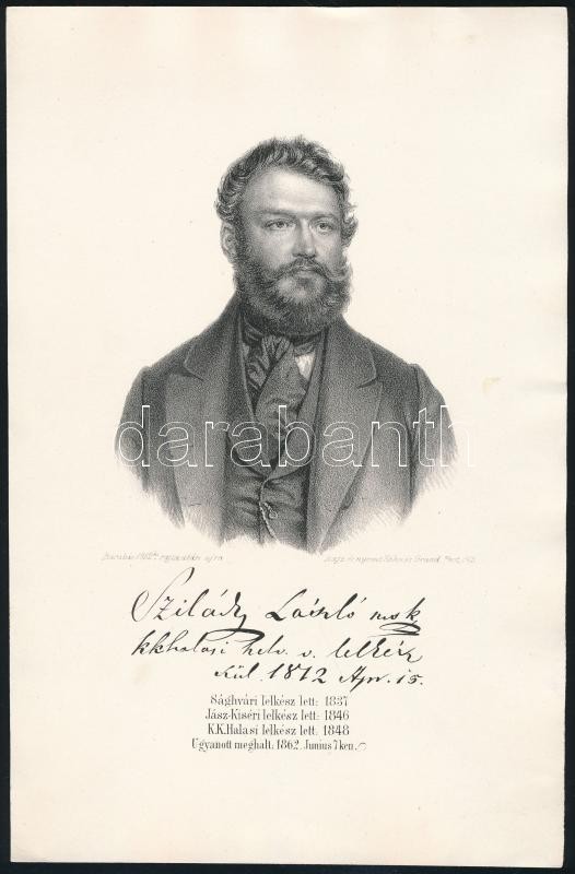 Barabás Miklós (1810-1898) 1852. évi rajza után Röhn és Grund metszése és nyomtatása 1863-ban: Szilády László református lelkész portréja. Litográfia, papír. Jelzett a litográfián. 26x17 cm