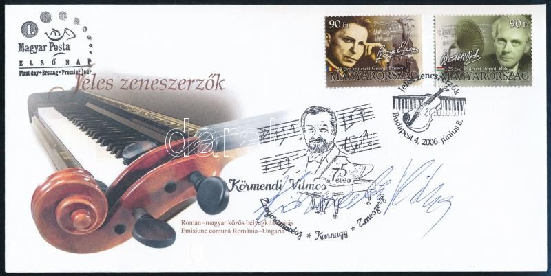 Leírás: 2006 Körmendi Vilmos (1931-2016) zeneszerző, karmester aláírása egy Jeles Zeneszerzők FDC-n