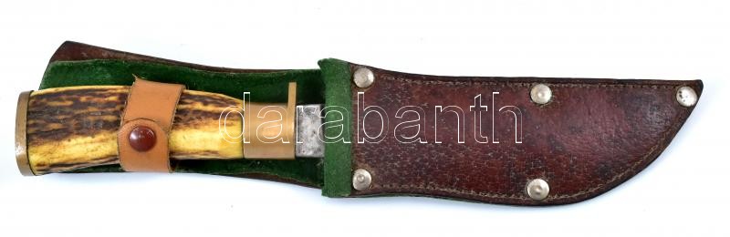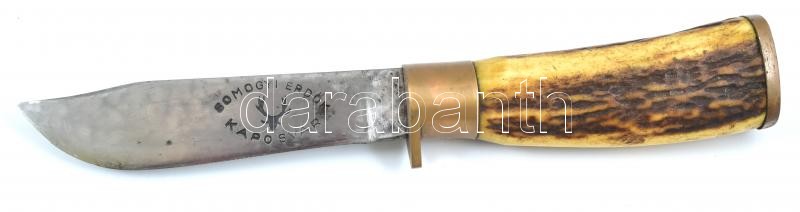 Leírás: Somogyi Erdők Kaposvár vadászkés, bőr tokban, h: 22 cm