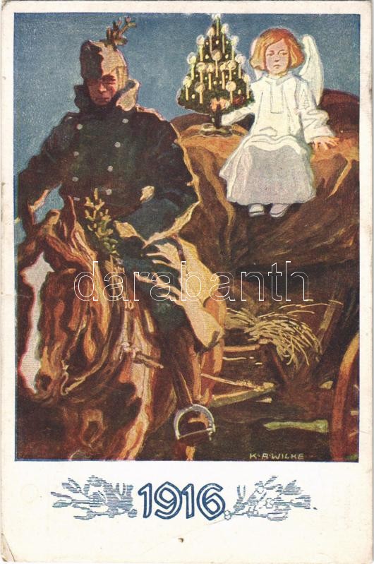 1916 Kriegsfürsorgeamt des K.u.K. Kriegsministeriums / WWI Austro-Hungarian K.u.K. military art postcard with Christmas and New Year greeting s: K. A. Wilke (EB)