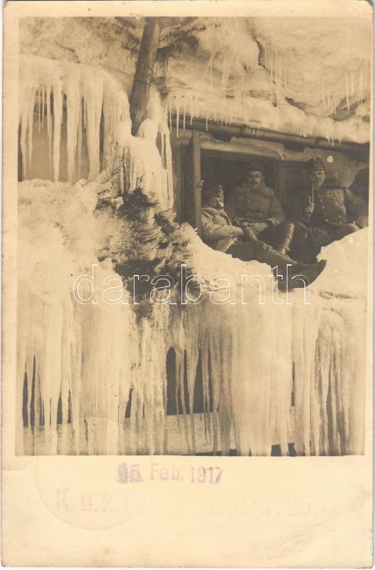 1917 K.u.K. Feldpostamt No. 95. / WWI Austro-Hungarian K.u.K. military... https://www.darabanth.com/hu/398-Gyorsarveres/398.0/Kepeslapok/Katonai~1000054/1917-KuK-Feldpostamt-No-95-WWI-Austro-Hungarian-KuK-military-soldiers-in-winter-photo-~II2431011