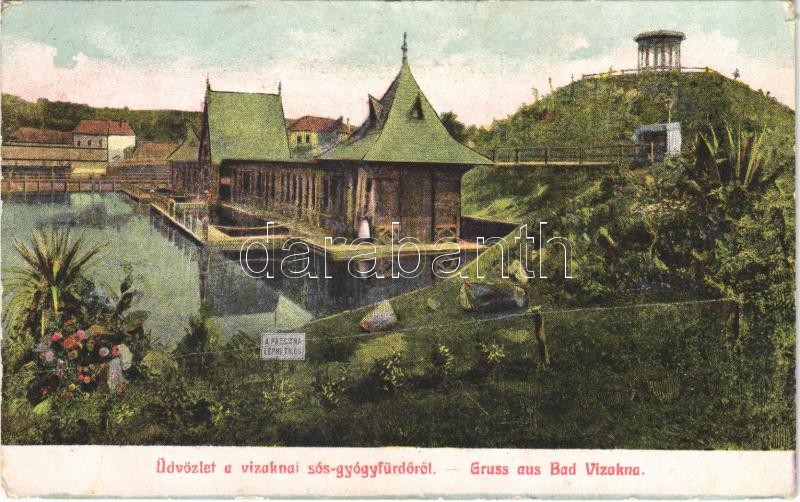 Leírás: 1910 Vízakna, Salzburg, Ocna Sibiului; sós gyógyfürdő. Takáts Jenő kiadása / spa, salt bath (EB)