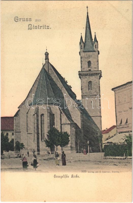 Beszterce, Bistritz, Bistrita; Evangélikus templom / Lutheran church https://www.darabanth.com/hu/399-Gyorsarveres/399.0/Kepeslapok/Erdely~1000050/Beszterce-Bistritz-Bistrita-Evangelikus-templom-Lutheran-church~II2443901