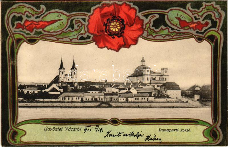 1901 Vác, Dunaparti korzó. Szecessziós virágos litho / Art Nouveau, fl... https://www.darabanth.com/hu/40-Nagyaukcio/40.1/Kepeslapok/Magyarorszag~16468/1901-Vac-Dunaparti-korzo-Szecesszios-viragos-litho-Art-Nouveau-floral-litho~II2871712