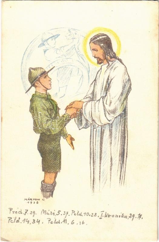 1926 A cserkész egyeneslelkű és feltétlenül igazat mond. Kiadja a Magyar Cserkészszövetség Nagytábortanácsa 1926. / Hungarian boy scout art postcard s: Márton L. (EK)