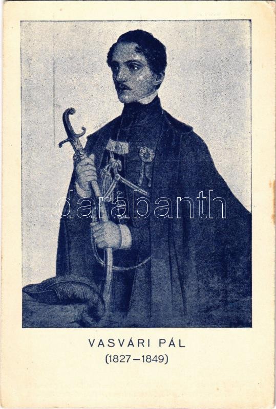 Vasvári Pál író, történész, pedagógus, filozófus, politikus, forradalmár, a ,,márciusi ifjak" egyik vezéralakja, honvéd őrnagy. Fejéregyházi Muresán László festmánye után. A Vasvári Pál kép alapja javára kiadja: A Magy. Görögkatolikus Egyetemi és Főiskolai Hallgatók Vasvári Pál-Köre (EK)