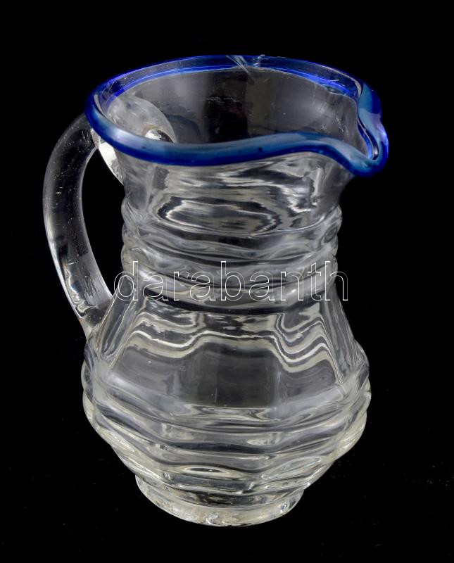 Feketeerdő, XIX. sz. eleje, Hutaüveg keresztelőkancsó, kobaltkék szájp... https://www.darabanth.com/hu/41-Nagyaukcio/41.1/Porcelan-keramia-uveg/Uvegtargyak~16779/Feketeerdo-XIX-sz-eleje-Hutauveg-keresztelokancso-kobaltkek-szajperemmel-peremnel-lepat~II2997783