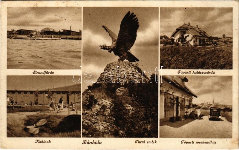 1941 Bánhida (Tatabánya), Strandfürdő, Kabinok, Tóparti halászcsárda, ... https://www.darabanth.com/hu/413-Gyorsarveres/413.0/Kepeslapok/Magyarorszag~2000006/1941-Banhida-Tatabanya-Strandfurdo-Kabinok-Toparti-halaszcsarda-weekendhaz-automobil-~II2574457