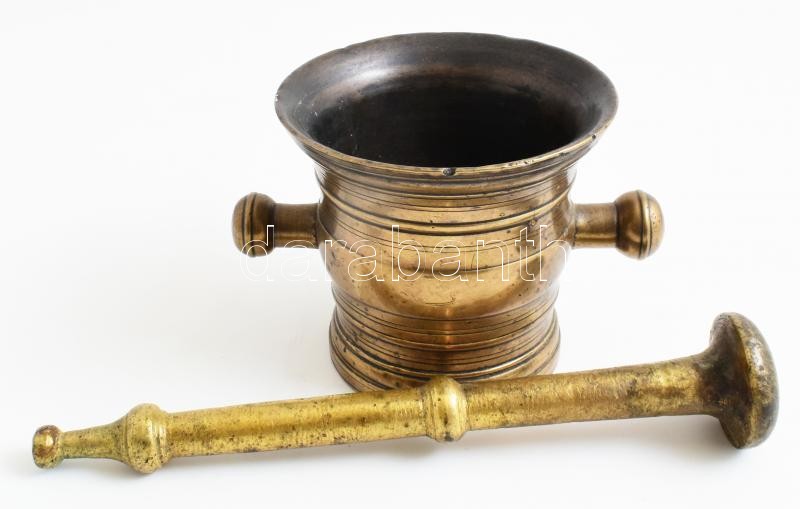 Bronz mozsár törővel, sérüléssel, m: 9,5 cm, h: 21 cm https://www.darabanth.com/hu/419-Gyorsarveres/419.0/Mutargy-papirregiseg-egyeb/Bolhapiac~500013/Bronz-mozsar-torovel-serulessel-m-9-5-cm-h-21-cm~II2651168