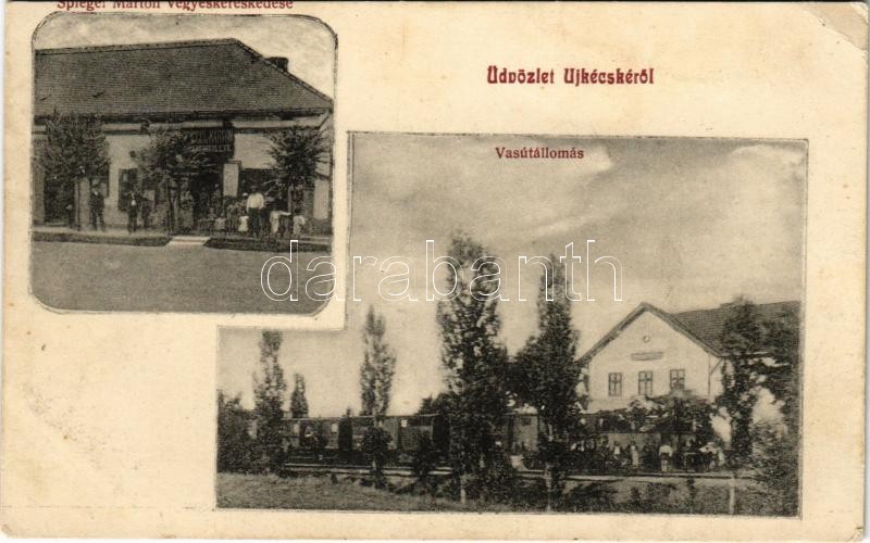 1912 Tiszakécske, Újkécske; vasútállomás, vonat, Spiegel Márton vegyes... https://www.darabanth.com/hu/422-Gyorsarveres/422.0/Kepeslapok/Magyarorszag~1500004/1912-Tiszakecske-Ujkecske-vasutallomas-vonat-Spiegel-Marton-vegyeskereskedo-uzlete-es-~II2682006