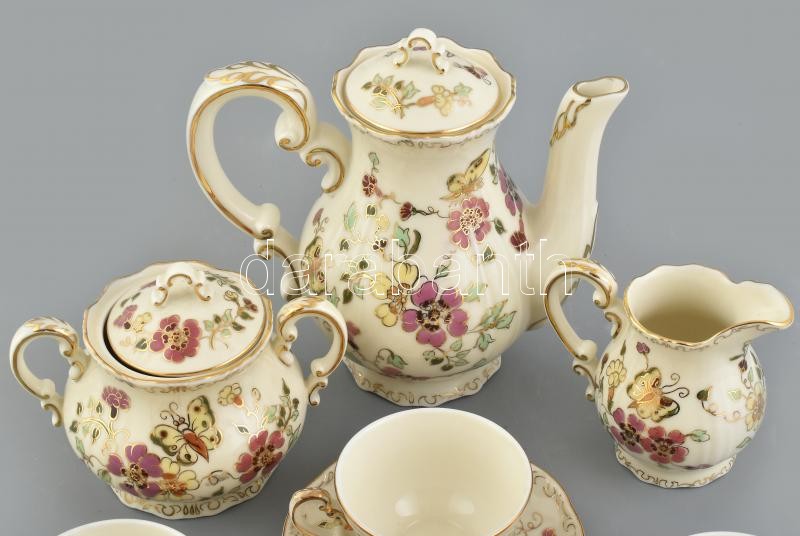 Leírás: Zsolnay pillangó mintás hat személyes mokkás készlet. Kézzel festett, jelzett, hibátlan.
