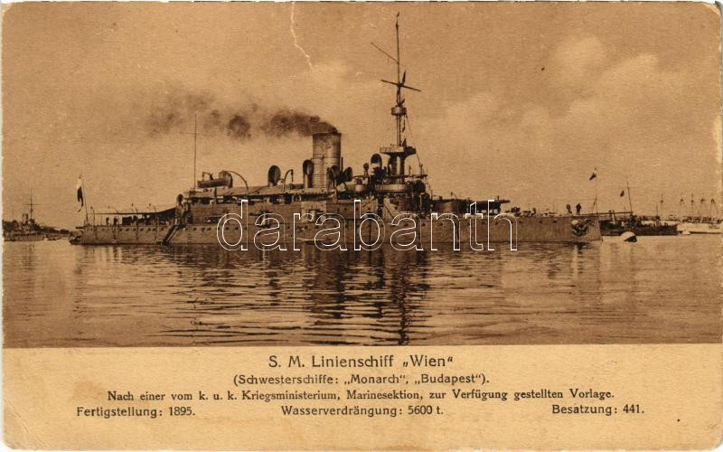 SM Linienschiff Wien K.u.K. Kriegsmarine / SMS Wien az Osztrák-Magyar Haditengerészet Monarch-osztályú partvédő csatahajója / Austro-Hungarian Navy SMS Wien coastal defense ship. Marine-Erinnerungs-Karte Nr. 70A (szakadás / tear)