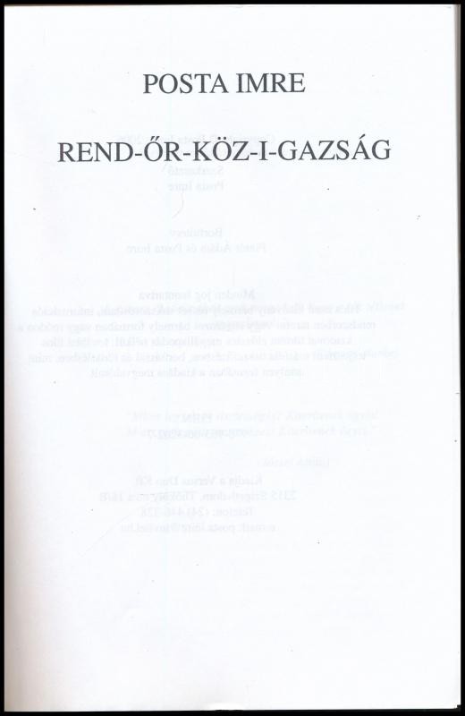 Posta Imre: Rend-őr-köz-i-gazság. Szigethalom, 2006, Versus Duo. Kiadó...