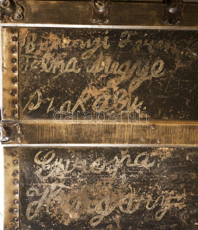 Régi, nagyméretű utazóláda, hajós láda, XX. sz. eleje. Fa, fém veretekkel, zárral, kulcs nélkül. Korának megfelelő, kopottas állapotban, 87x54x63 cm. CSAK SZEMÉLYES ÁTVÉTEL! / PERSONAL COLLECTION ONLY!