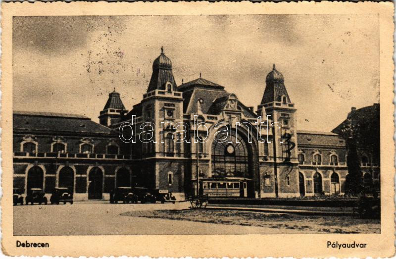 1939 Debrecen, pályaudvar, vasútállomás, villamos (EK) https://www.darabanth.com/hu/433-Gyorsarveres/433.0/Kepeslapok/Magyarorszag~1500006/1939-Debrecen-palyaudvar-vasutallomas-villamos-EK~II2794690