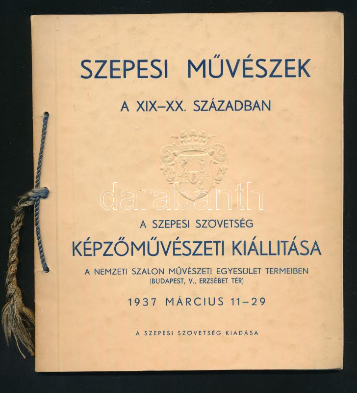 Szepesi Művészek a XIX-XX. században. A Szepesi Szövetség Képzőművészeinek kiállítása a Nemzeti Szalon Művészeti Egyesület termeiben. 1937. március 11-29. Bp.,1937,Szepesi Szövetség,( Ifj. Keller Ernő-ny.), 17 sztl. lev.+25 t. Benne a fővédnökök, védnökök, és a Szepesi Szövetség tisztikarának, és a Nemzeti Szalon Művészeti Egyesület tisztikarának névsorával, Kirsch Jenő előszavával, a kiállított műtárgyak jegyzékével, a kiállított művek alkotóinak névsorával (születési és halálozási dátumokkal), fekete-fehér képmellékletekkel, a borító hátán Herendi Porcellángyárt Rt. reklámjával. Kiadói zsínorfűzésű papírkötésben. / Artist of Szepes in the XIX.th-XX.th century. Bp.,1937, Alliance of Szepes, 17. sztl. lev.+25 t. Paperbinding, in Hungarian language.