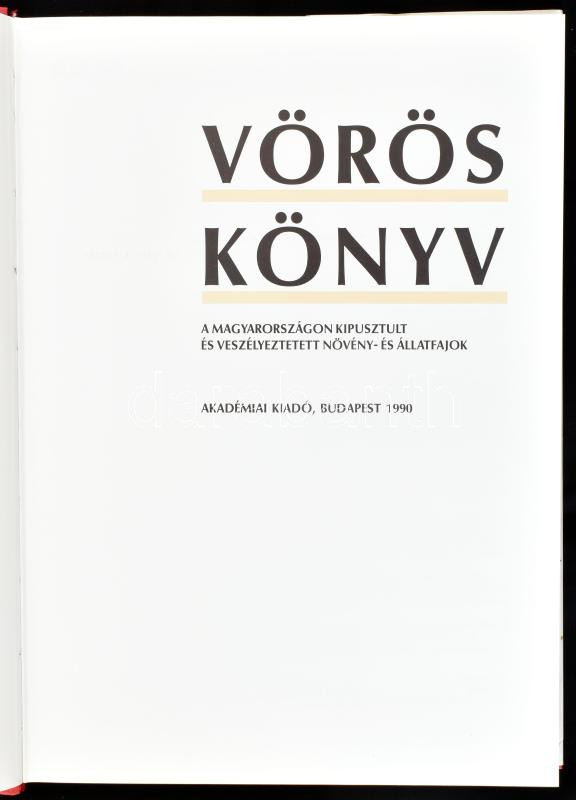 Vörös könyv. A Magyarországon kipusztult és veszélyeztetett növény és állatfajok. Szerk.: Rakonczay Zoltán. Bp., 1990, Akadémiai Kiadó. Gazdag képanyaggal illusztrált. Kiadói egészvászon-kötés, kiadói papír védőborítóban, jó állapotban.