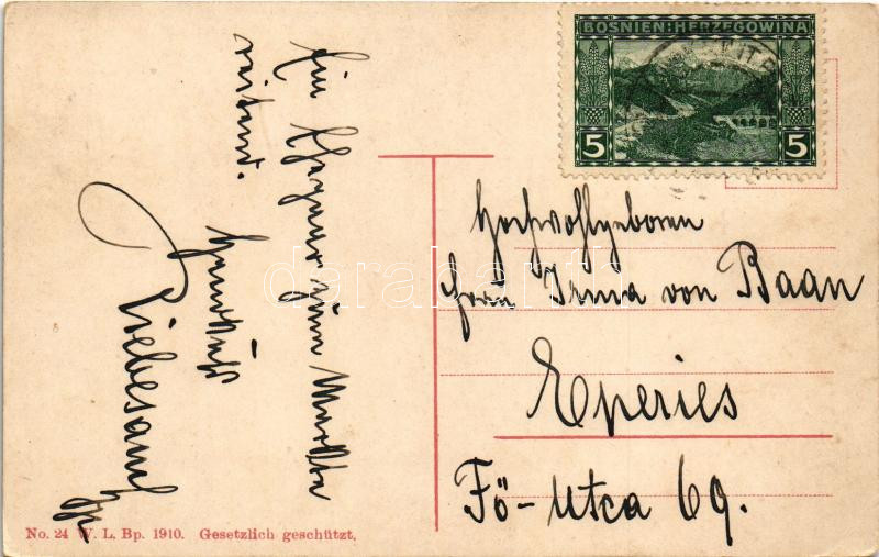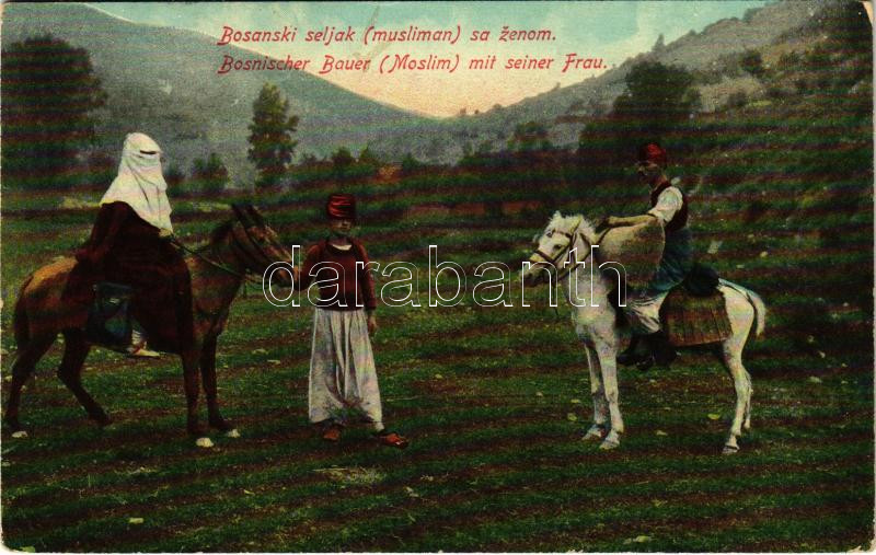 Bosanski seljak (musliman) sa zenom / Bosnischer Bauer (Moslim) mit seiner Frau / Bosnian folklore, Muslim man with his wife. W.L. Bp. No. 24. 1910. (EK)