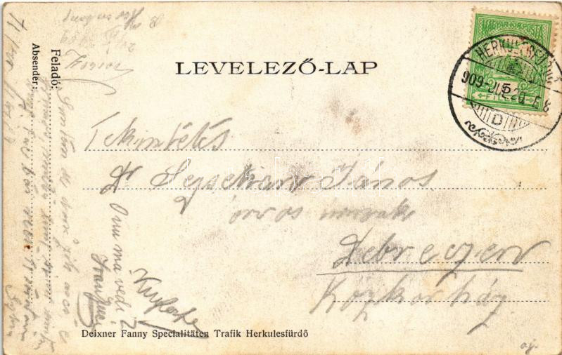 1909 Herkulesfürdő, Baile Herculane; Herkules fürdőház. Deixner Fanny ... https://www.darabanth.com/hu/439-Gyorsarveres/439.0/Kepeslapok/Erdely~2000007/1909-Herkulesfurdo-Baile-Herculane-Herkules-furdohaz-Deixner-Fanny-kiadasa-Herkules-Badeh~II2877248