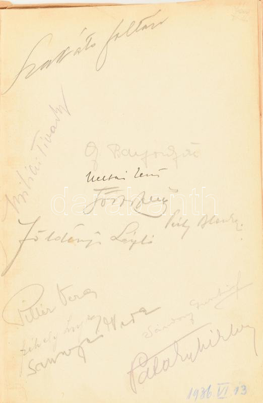 Heltai Jenő: A néma levente. Az előzéklapon a szerző, Heltai Jenő, ill. a Magyar Színház 1936. márc. 20-i ősbemutató előadásán fellépett színészek (Pillér Vera, Szakáts Zoltán, Bilicsi Tivadar, Péchy Blanka, Bajor Gizi, Földényi László, Székely Lujza) autográf aláírásaival. Bp., 1936, Athenaeum, 166+(2) p. Kiadói kartonált papírkötés, sérült borítóval.