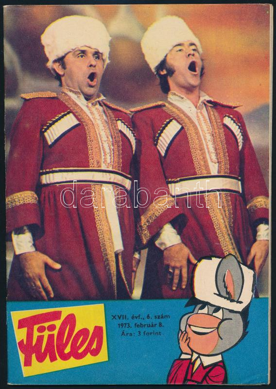 1973 Füles rejtvényújság, magazin XVII. évf. 6. száma, a címlapon Hofi... https://www.darabanth.com/hu/439-Gyorsarveres/439.0/Mutargy-papirregiseg-egyeb/Nyomtatvanyok~1500008/1973-Fules-rejtvenyujsag-magazin-XVII-evf-6-szama-a-cimlapon-Hofi-Geza-es-Koos-Janos~II2879139