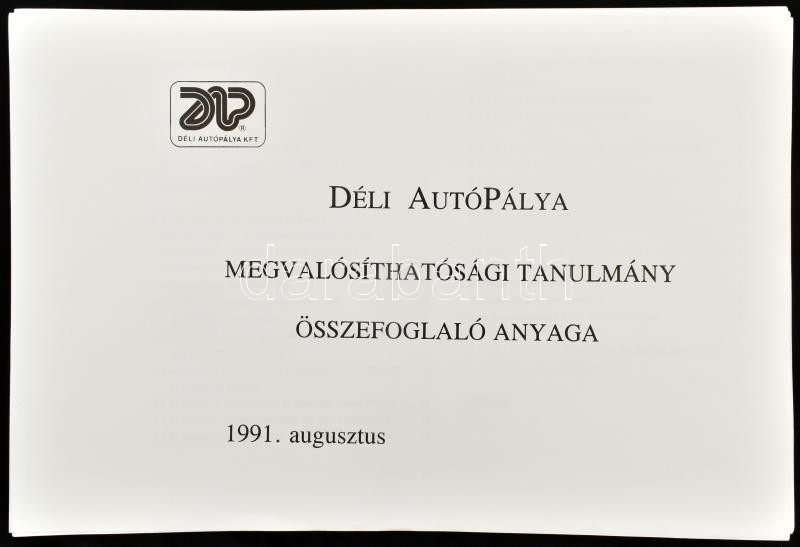 1991 Déli autópálya megvalósíthatósági tanulmány összefoglaló anyaga.