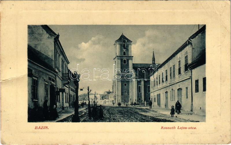 Leírás: Bazin, Bösing, Bözing, Pezinok; Kossuth Lajos utca, üzletek. W.L. Bp. 2773. 1910-13. 9766. Klein Alfrédné kiadása / street, shops (fa)
