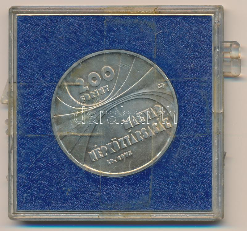 Leírás: 1975. 200Ft Ag "Magyar Tudományos Akadémia" sérült MNB tokban T:BU patina