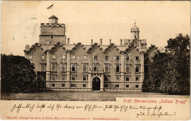 Leírás: 1910 Lajtabruck, Bruck an der Leitha; Gräfl. Harrach'sches Schloss Prugg. Alex J. Klein No. 576. / Harrach (Prugg) kastély / castle