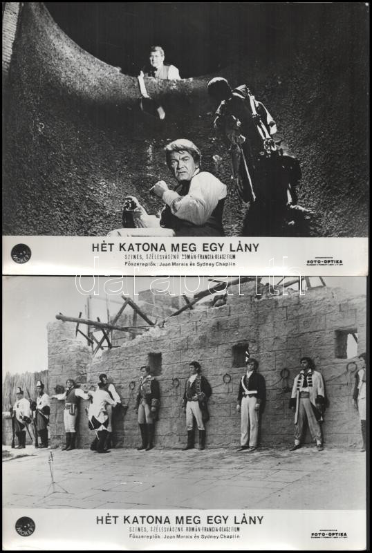 cca 1967 ,,Hét katona meg egy lány" című román - francia film jelenetei és szereplői, 23 db vintage produkciós filmfotó ezüst zselatinos fotópapíron, a használatból eredő (esetleges) kisebb hibákkal, 18x24 cm