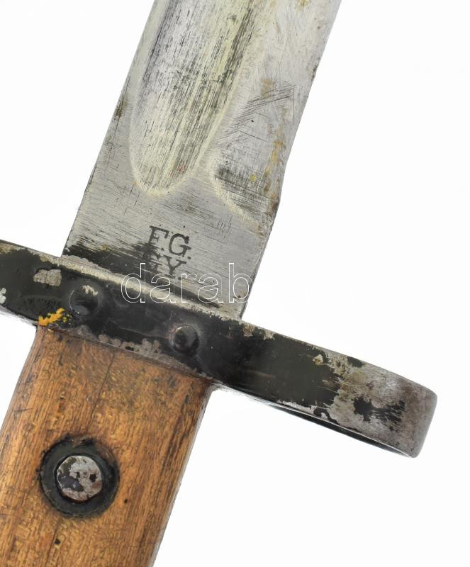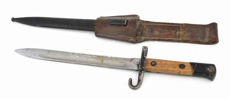 Mannlicher M1895 altiszti bajonett, jelzett a pengén (koronás magyar címerrel és "F.G.GY." gyártói jelzéssel), kompletten, papuccsal és hüvellyel, korának megfelelő állapotban, h: 36 cm
