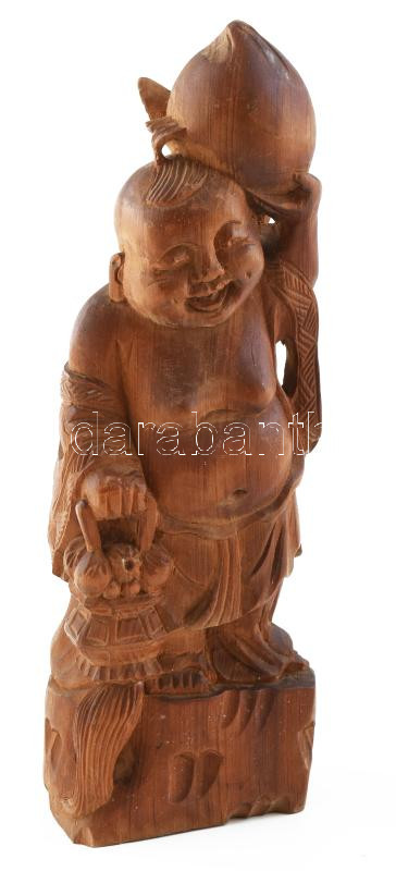 Faragott fa Buddha szobor, jelzés nélkül, kopással, m: 22 cm