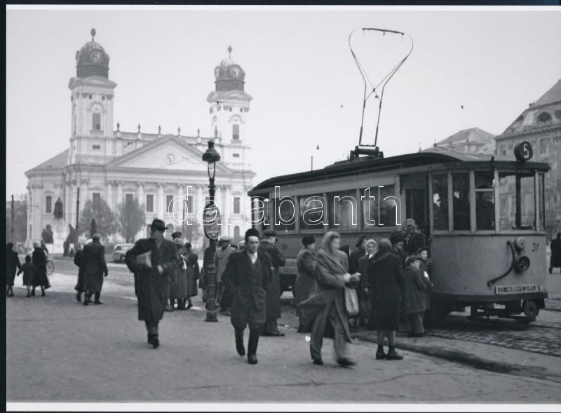 cca 1955 Debrecen, a Bika szálló és Nyulas között közlekedő 5-ös villamos, Kotnyek Antal (1921-1990) budapesti fotóriporter hagyatékából 1 db modern nagyítás, 15x21 cm
